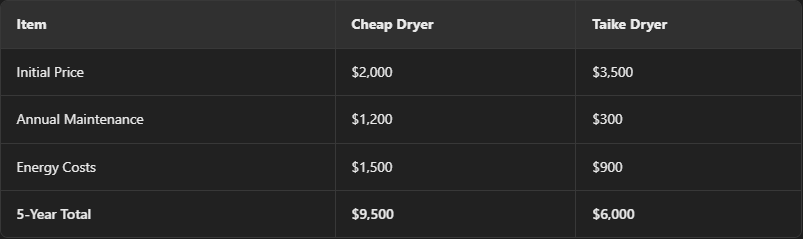 Kuszące jest wybrać suszarkę budżetową, ale ukryte wydatki mogą szybko się sumować. Oto, na co należy uważać-i dlaczego produkty Taike są mądrzejszą inwestycją. Ryzyk tanich suszarek